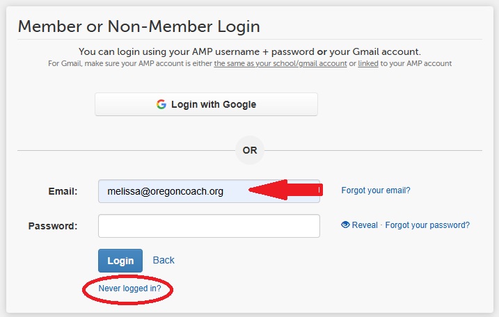 If you have never logged into your OACA FinalForms account, please enter your email address and click on “Never logged in?” under Member or Non-Member Login. You will need to verify your account information prior to registering for the clinic.